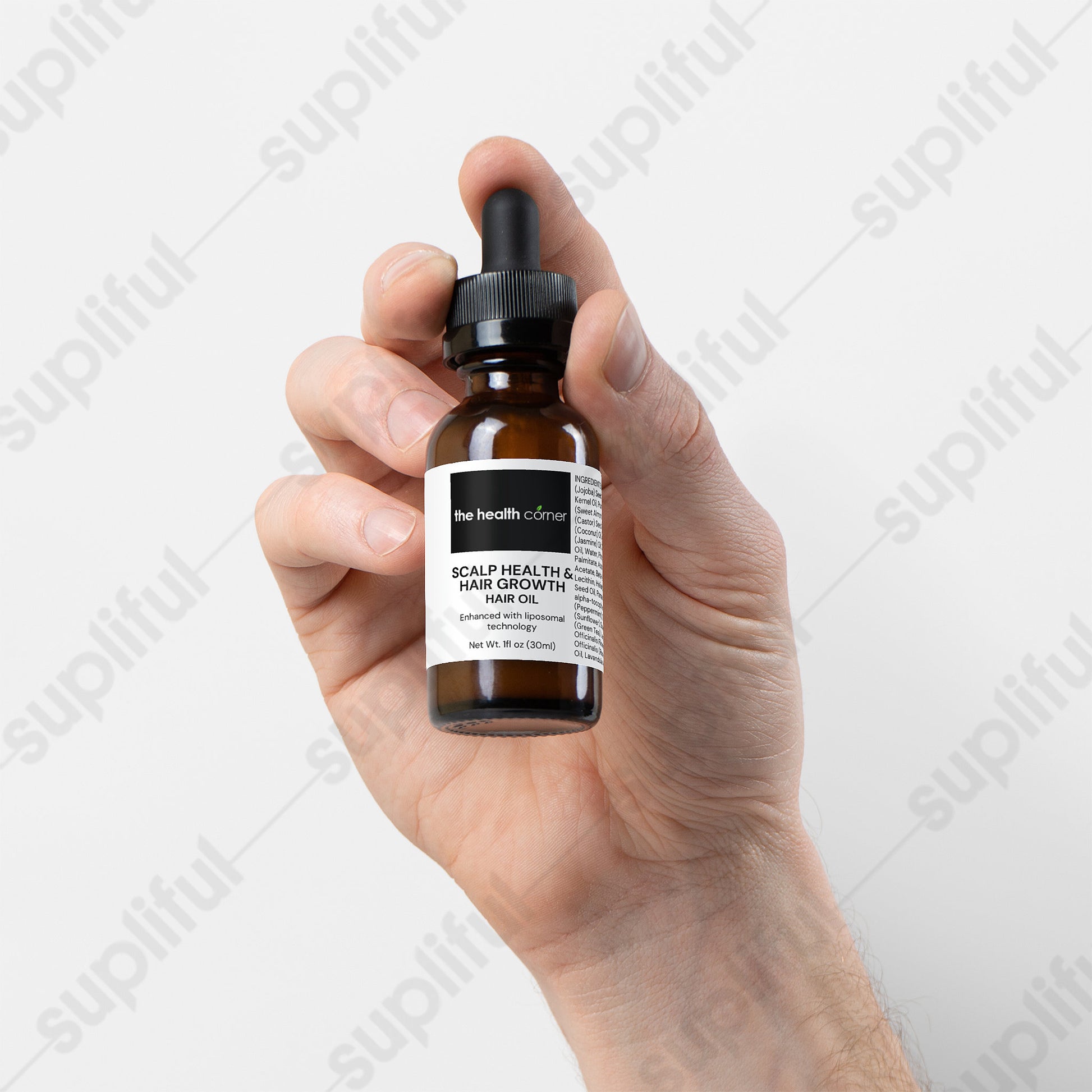 Maintaining a healthy scalp is key for healthy hair growth. This formula combines the best natural oils to promote scalp health and hair growth. In addition to natural oils such as Castor Oil, Jasmine Oil and Rosemary Oil, widely known for its hair growth properties, we added Vitamin A (also known as Retinol), Vitamin C, Vitamin E and Niacinamide to this formula. These are all excellent skincare ingredients that are now becoming increasingly popular to promote scalp health. Niacinamide has already been studied to prevent oxidative stress and in turn promote hair growth. And there's more: all these vitamins are being delivered in liposomal format for maximum absorption.