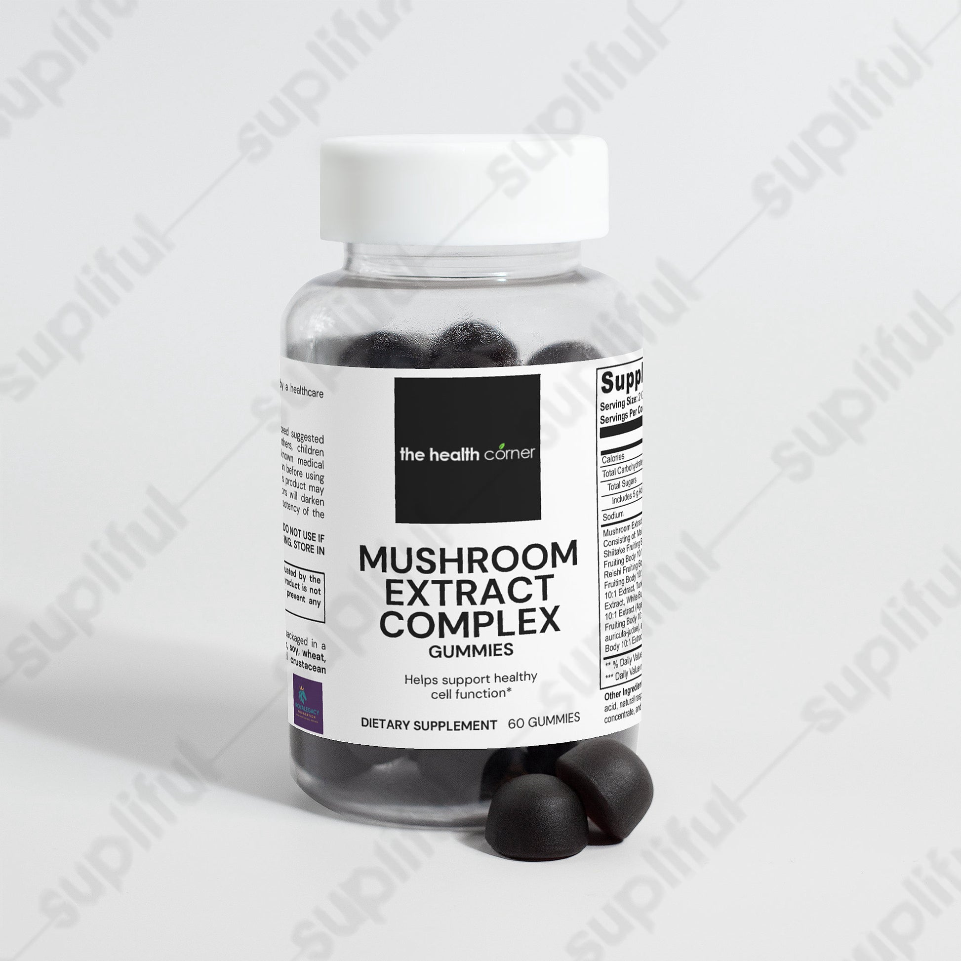 Our Mushroom Extract Complex Gummies combine the most sought-after mushrooms in the world: Maitake, Shiitake, Lion's Mane, Reishi, Cordyceps, Chaga, Turkey Tail, White Button Mushroom, Black Fungus, and Royal Sun Mushrooms.